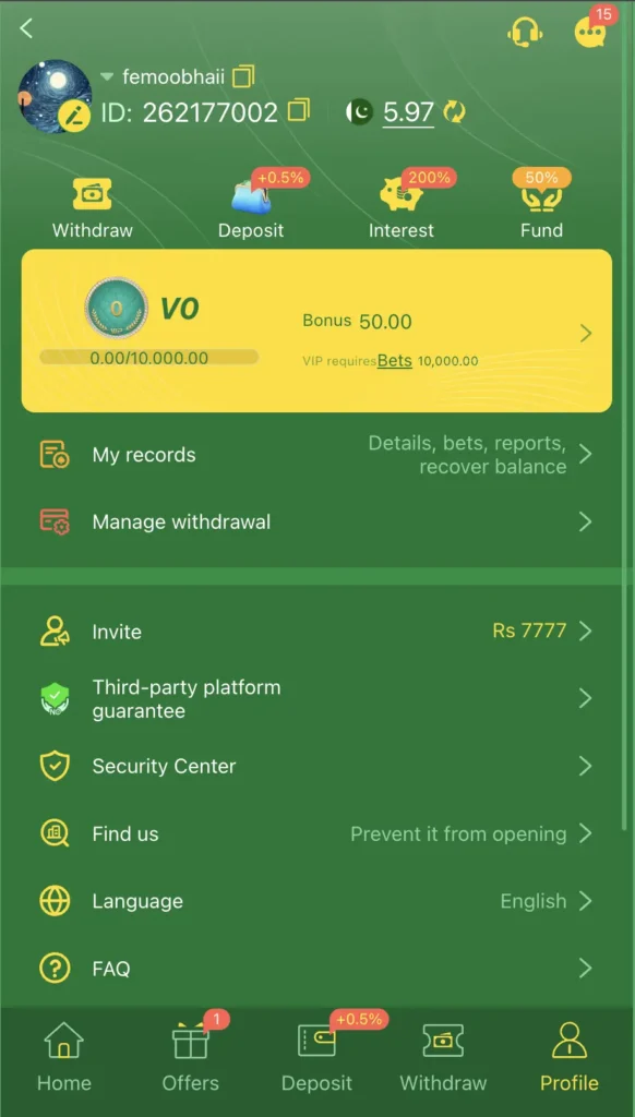 In simple terms, this online casino and betting app is an all-in-one platform where players can enjoy a variety of games, including color prediction games, slot machines, live casino games, card games, and sports betting. Moreover, the platform is optimized for Android devices, which means most Pakistani users can easily install and use it without any technical issues. Because of its lightweight APK size and smooth performance, even low-storage mobile phones can run the app efficiently.